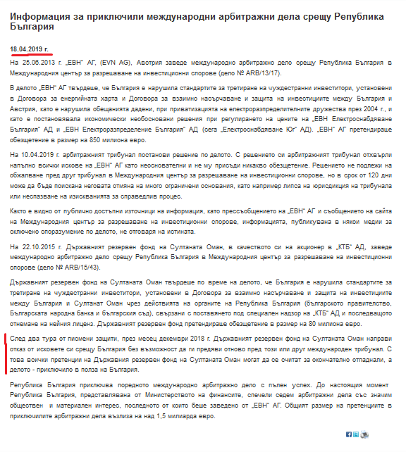 There have been rumors that Bulgaria and Oman settled behind the curtain for months. The stakes are really high for Bulgaria’s corrupt regime. If they admit they settled, taxpayers will want to know the price. Bulgaria’s government does not have an interest in this.