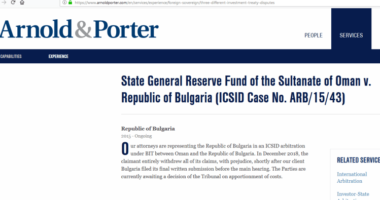 The title of the article is “The Arbitral Tribunal in Washington Decided Conclusively the Dispute between Bulgaria and the Omani Fund: SGRF Withdrew its Claims Without the Option to Litigate Again.” The last sentence of this announcement is even more peculiar: