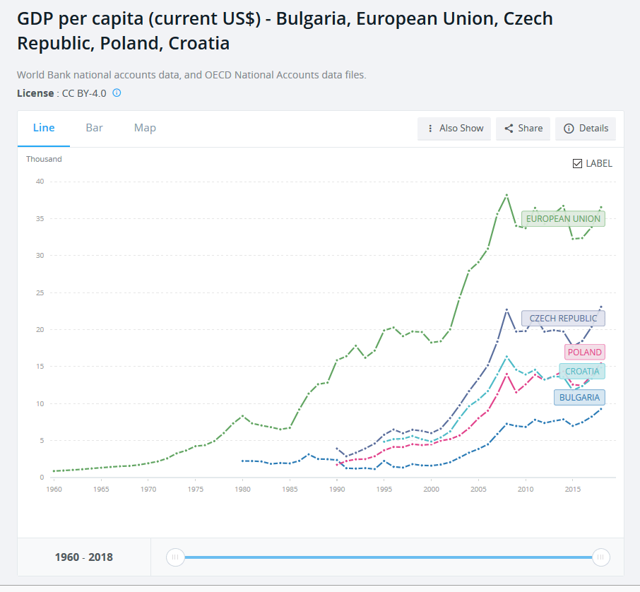 Borissov and the EPP-dominated European Commission conveniently forget that Bulgaria has always had the lowest GDP per capita in the EU. In 2018, it was $9,272.629 while the average GDP per capita in the EU was $36,546.4.