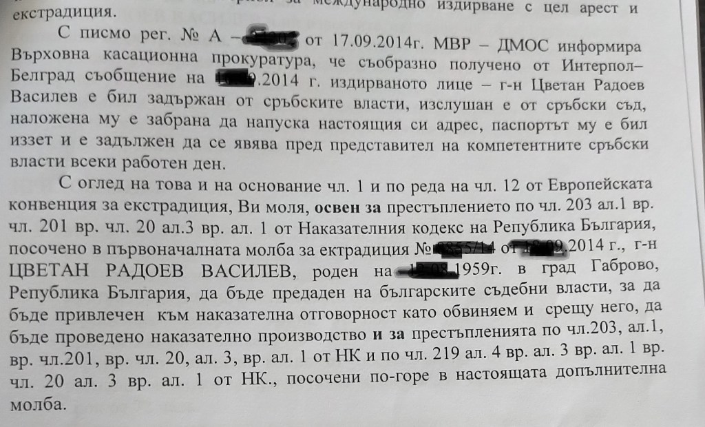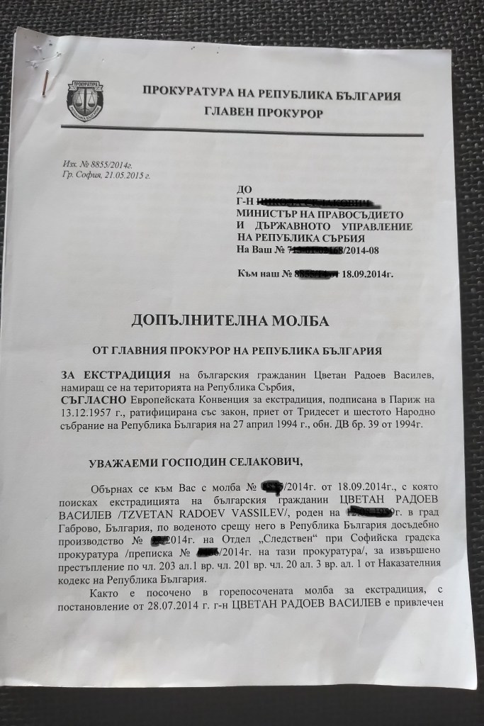 Имам обосновано предположение, че тесните специалисти по extradition law (екстрадиционно право) ще ви кажат, че не е правомерно да съществуват няколко молби за екстрадиция за едно и също лице от една и съща държава по едно и също време. Явно тайният наръчник на българската прокуратура указва друго, защото през пролетта на 2015 г. в Сърбия получават една “допълнителна молба” за екстрадиция, след като вече са получили молба за екстрадиция през септември 2014 г.